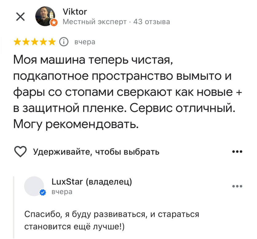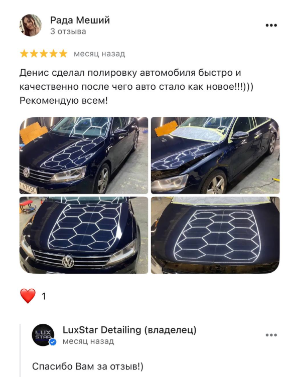 Czas wykonania usługi zależy od jej zakresu. Na przykład czyszczenie wnętrza trwa 6–12 godzin, polerowanie lakieru – od 8 godzin, oklejanie folią – 2–5 dni.